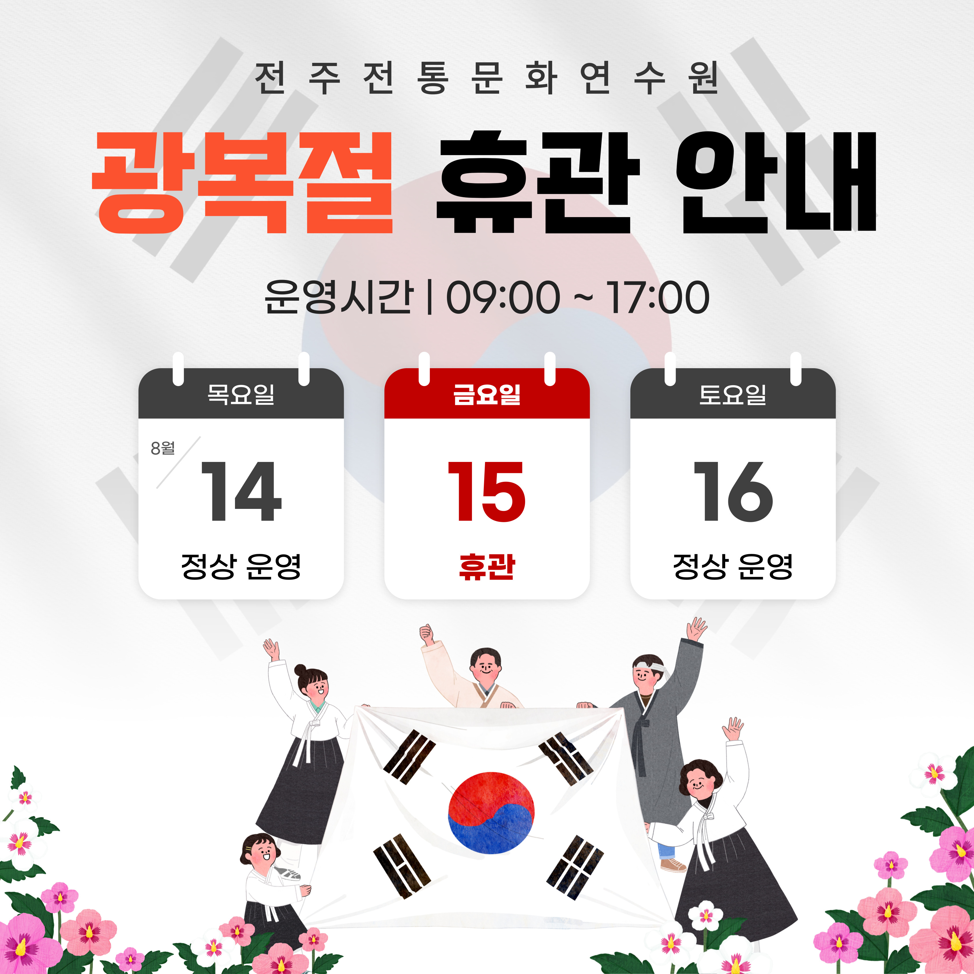 전주전통문화연수원 광복절 휴관 안내드립니다.