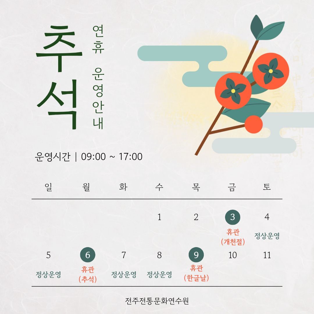 10/4(토), 5(일), 7(화), 8(수)에는 정상 운영 하오니,