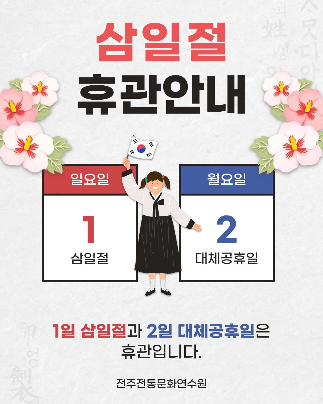 📌전주전통문화연수원 삼일절 휴관 안내